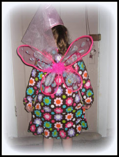 She had changed into a Fleece nightgown, fairy wings and a cone shaped princess hat.